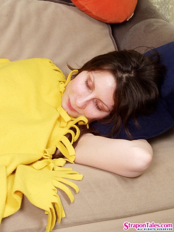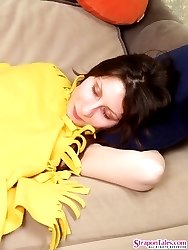 Lewd gal getting a taste of pantyhosed strap-on begging for hardcore finale