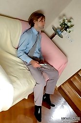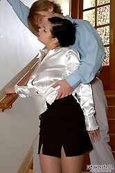 Sexy pantyhosed chick with insatiable desire for sex fucking on the stairs